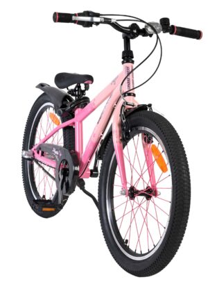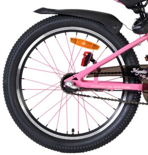 De Volare Mystic is voorzien van verlichting aan de voor- en achterkant en reflectoren in de wielen, wat zorgt voor goede zichtbaarheid in het verkeer. Het sportieve karakter wordt extra benadrukt door de opvallende roze spaken, die de fiets een unieke uitstraling geven. Daarnaast beschikt de fiets over een slot en een bel, zodat je kind veilig en goed voorbereid op pad kan.